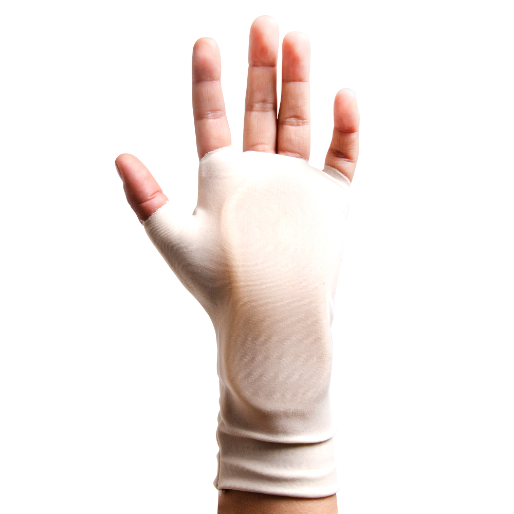 Guante recubierto con gel polímero en la parte interior para evitar fricción y roce, reduce el riesgo de cicatriz queloide o hipertrófica.