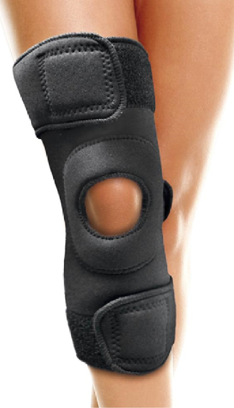 Soporte de rodilla diseñado para tratar la zona afectada. Orificio patelar que centraliza la rótula y alivia la presión rotuliana sobre el fémur. Permite mejorar el alineamiento patelofemoral.