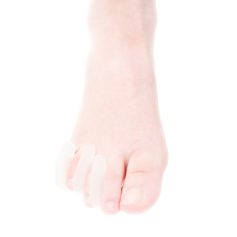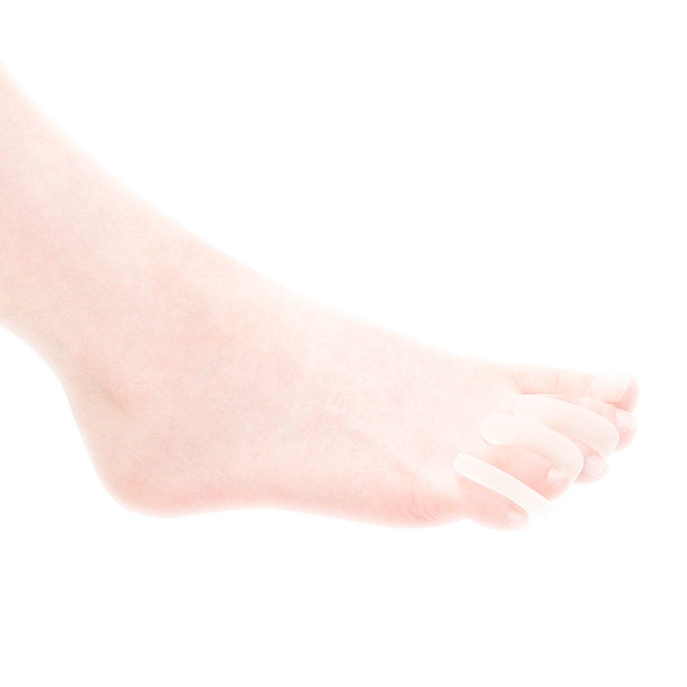 Separador interdigital en gel polímero que evita la superposición de dedos y fricción interdigital. Separador en forma de jota, tiene una alta elasticidad que le permite adaptarse a la anatomía del dedo.