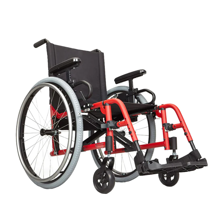 Silla de ruedas activa de autopropulsión ultra ligera con estructura plegable. Diseño minimalista.
