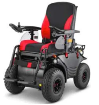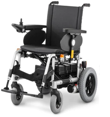 Silla motorizada electrónica de tracción trasera potenciada para uso interior y exterior para usuarios con dificultad de autopropulsión.