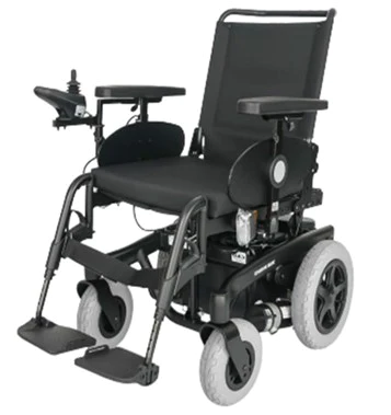 Silla motorizada electrónica de tracción trasera potenciada para uso interior y exterior para usuarios con dificultad de autopropulsión.